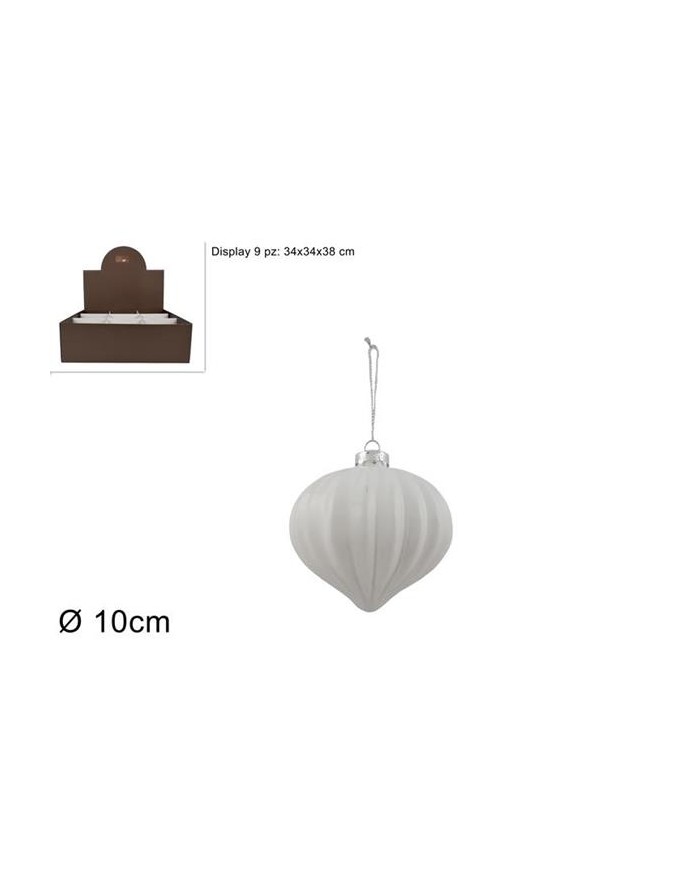 PALLA VETRO GOCCIA 10cm B.CA RIGATA 56924