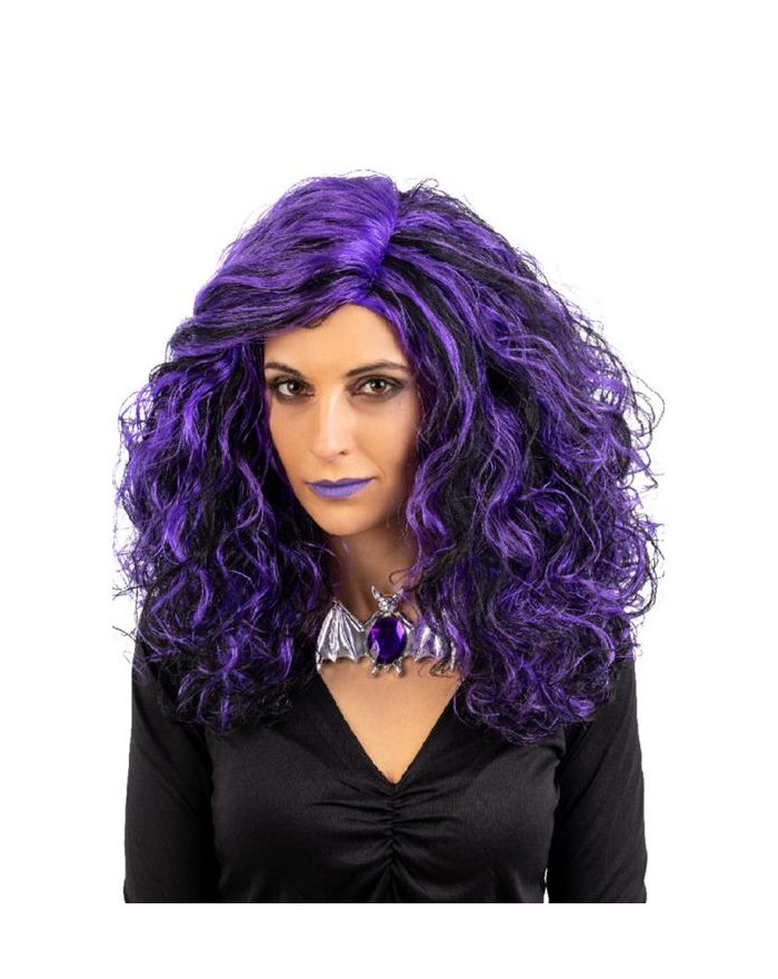 PARRUCCA ONDULATA NERA E VIOLA 02161